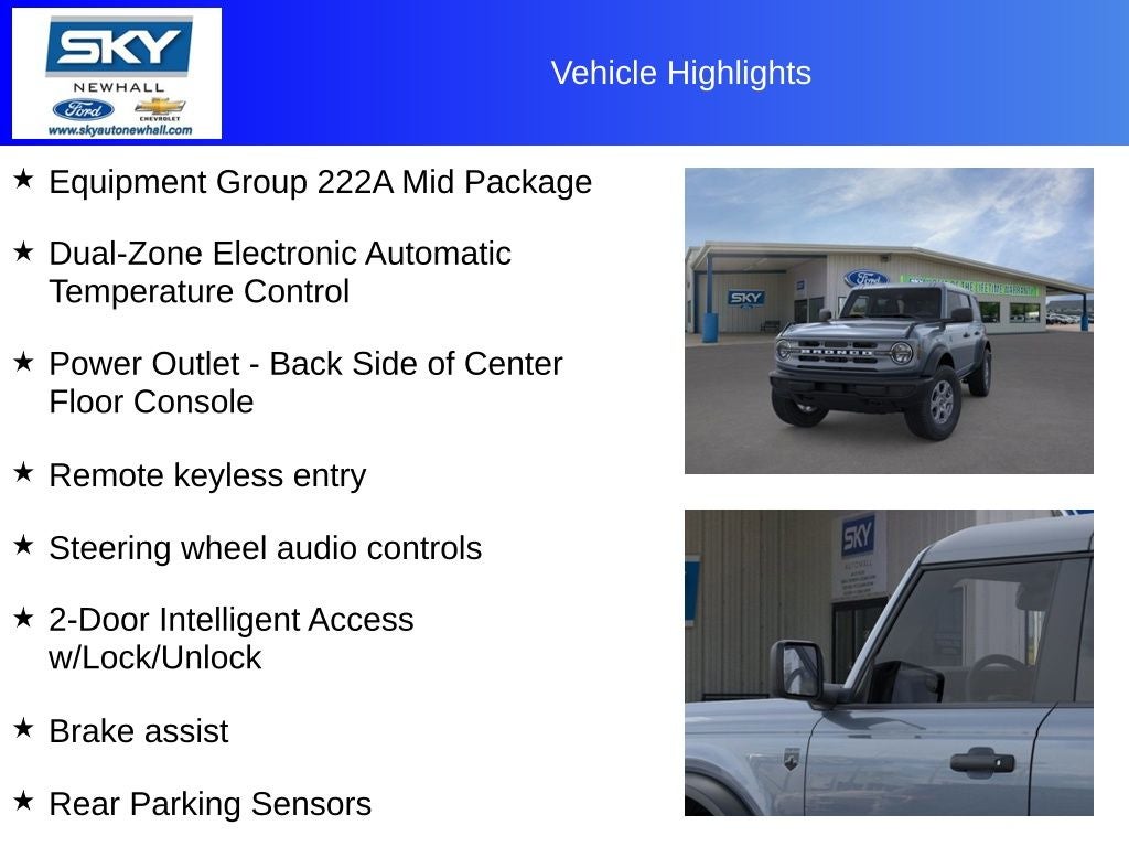 The Big Bend trim strikes a perfect balance between capability and everyday versatility. Its engineered to handle changing road conditions with confidence while maintaining smooth, composed driving manners. With its distinctive personality and go-anywhere spirit, the 2025 Ford Bronco Big Bend is an excellent choice for drivers who want a vehicle thats as adventurous as they are, without sacrificing comfort or style.