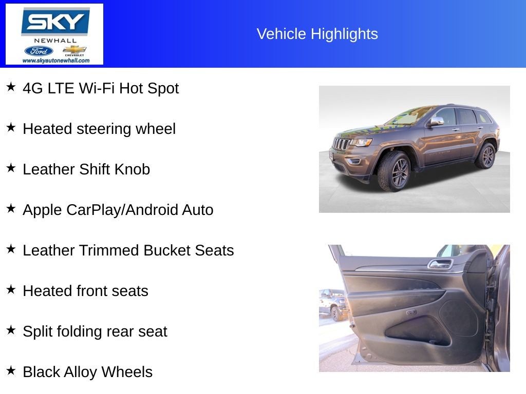 Experience the perfect blend of capability, comfort, and style with the 2020 Jeep Grand Cherokee Limited. This SUV offers a refined driving experience, whether you’re navigating city streets or exploring off the beaten path. Inside, you’ll find a spacious, thoughtfully designed cabin with premium materials that make every journey enjoyable. The Grand Cherokee Limited delivers confidence on the road with smooth handling, responsive performance, and advanced technology that keeps you connected and comfortable. Its bold exterior design turns heads, while its versatile interior adapts effortlessly to your lifestyle, making it an ideal choice for both everyday adventures and weekend getaways.