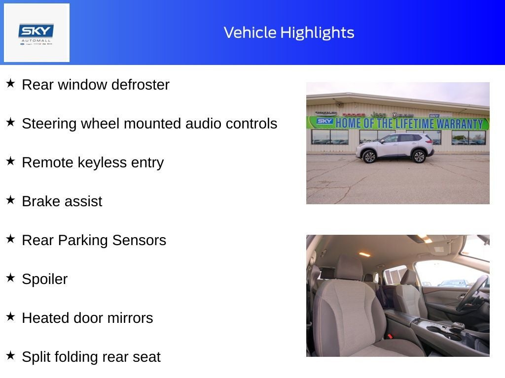 Behind the wheel, the Rogue SV delivers a smooth, confident ride with responsive handling that makes city driving easy and highway cruising relaxing. The cabin is quiet and comfortable, giving you a sense of calm no matter where the road takes you. With flexible cargo space and plenty of room for passengers, it adapts easily to busy schedules, road trips, or errands around town.