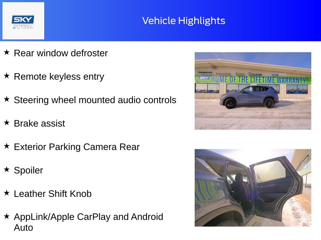 Alloy wheels, AppLink/Apple CarPlay and Android Auto, Brake assist, Exterior Parking Camera Rear, Heated Front Bucket Seats, Leather Seat Trim, Leather Shift Knob, Leather steering wheel, Rear window defroster, Remote keyless entry, Split folding rear seat, Spoiler, Steering wheel mounted audio controls. Polymetal Gray Metallic 2024 Mazda CX-5 2.5 S Carbon Edition AWD 6-Speed Automatic 2.5L I4 DOHC 16V LEV3 SULEV30 187hp