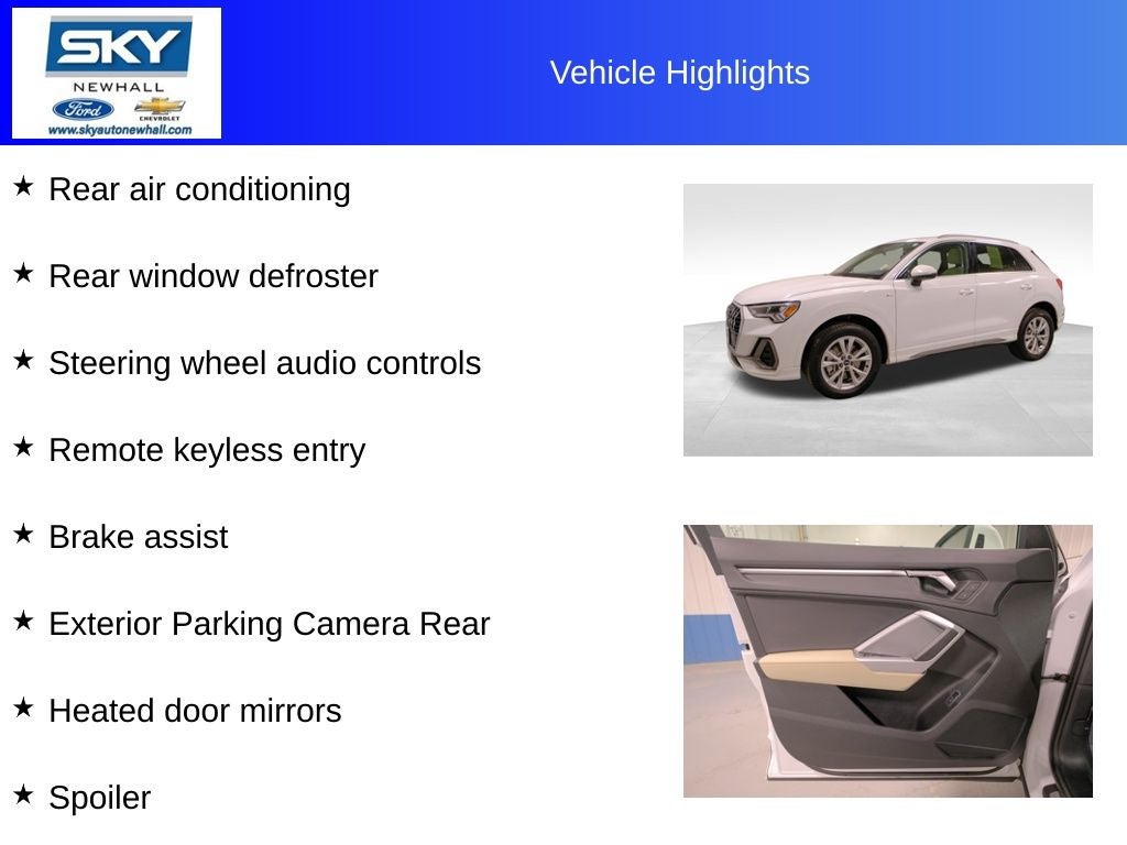 The 2025 Audi Q3 Premium is a compact luxury SUV that feels right at home whether you’re navigating city streets or heading out for a weekend escape. Its sleek, modern design makes a strong first impression, while the refined interior welcomes you with high-quality materials, clean lines, and a driver-focused layout that feels both comfortable and intuitive. The cabin is thoughtfully designed to give you plenty of space for passengers and cargo, making everyday errands and longer trips equally enjoyable.