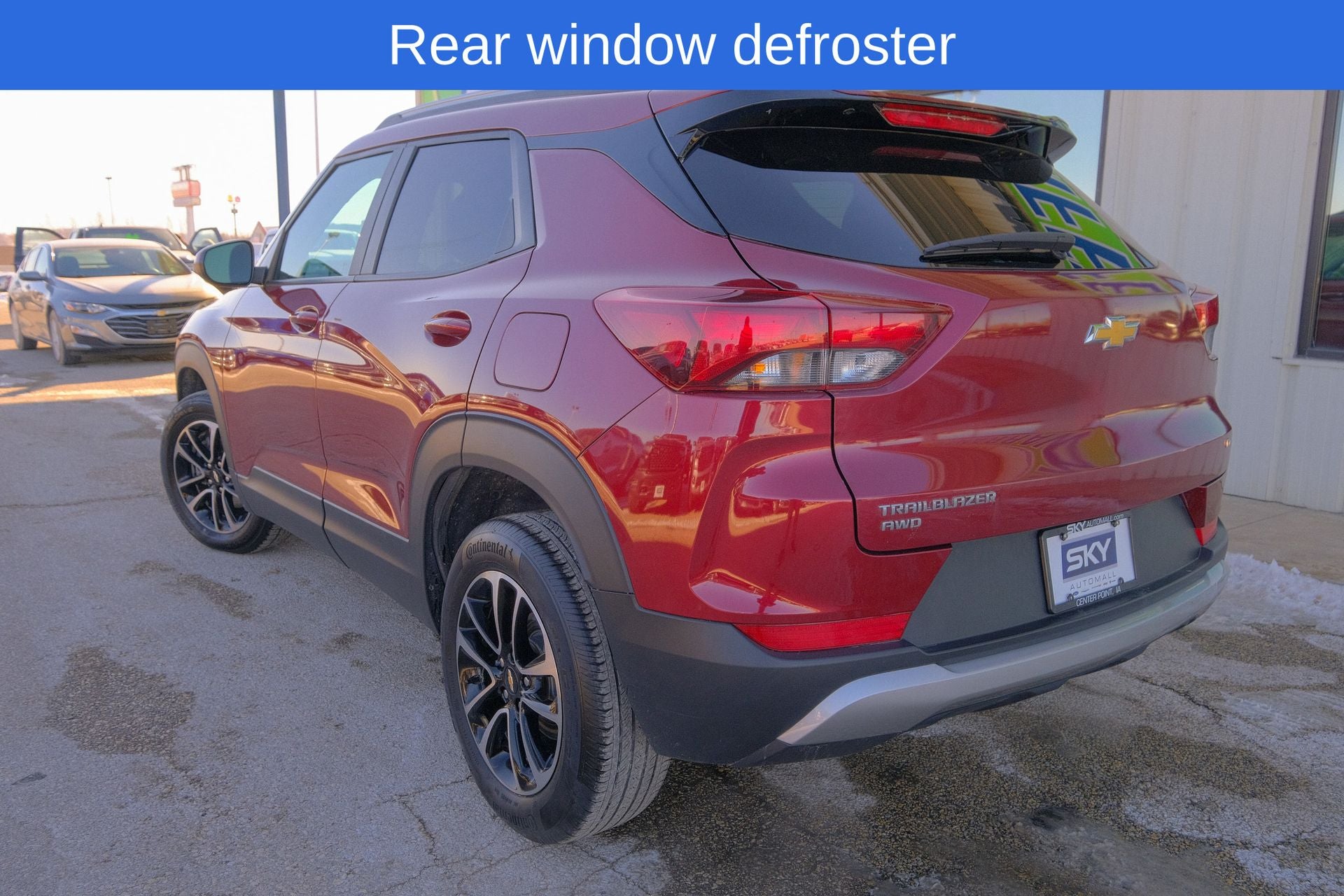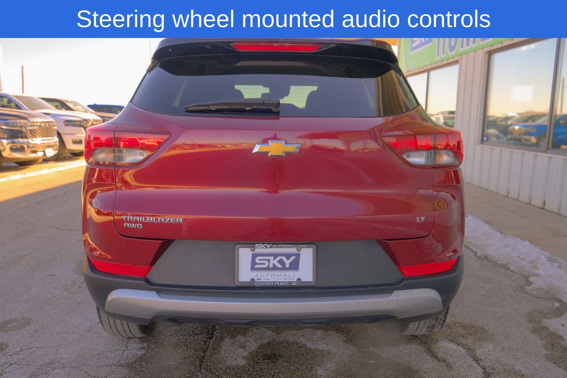 Alloy wheels, Brake assist, Exterior Parking Camera Rear, Heated door mirrors, Preferred Equipment Group 1LT, Rear window defroster, Remote keyless entry, Split folding rear seat, Spoiler, Steering wheel mounted audio controls. Crimson Metallic 2025 Chevrolet TrailBlazer LT AWD 9-Speed Automatic 1.3L I3 Turbocharged DOHC 12V LEV3-SULEV30 155hp