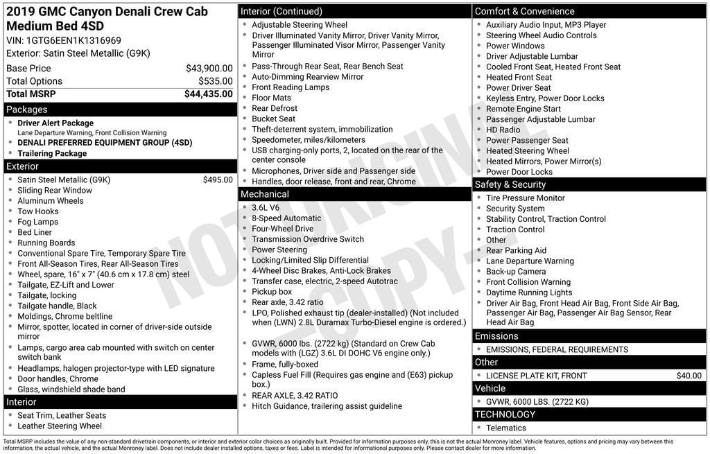 Used 2019 GMCCanyon 4WD Denali Truck Engine: , 6Cyl Gas