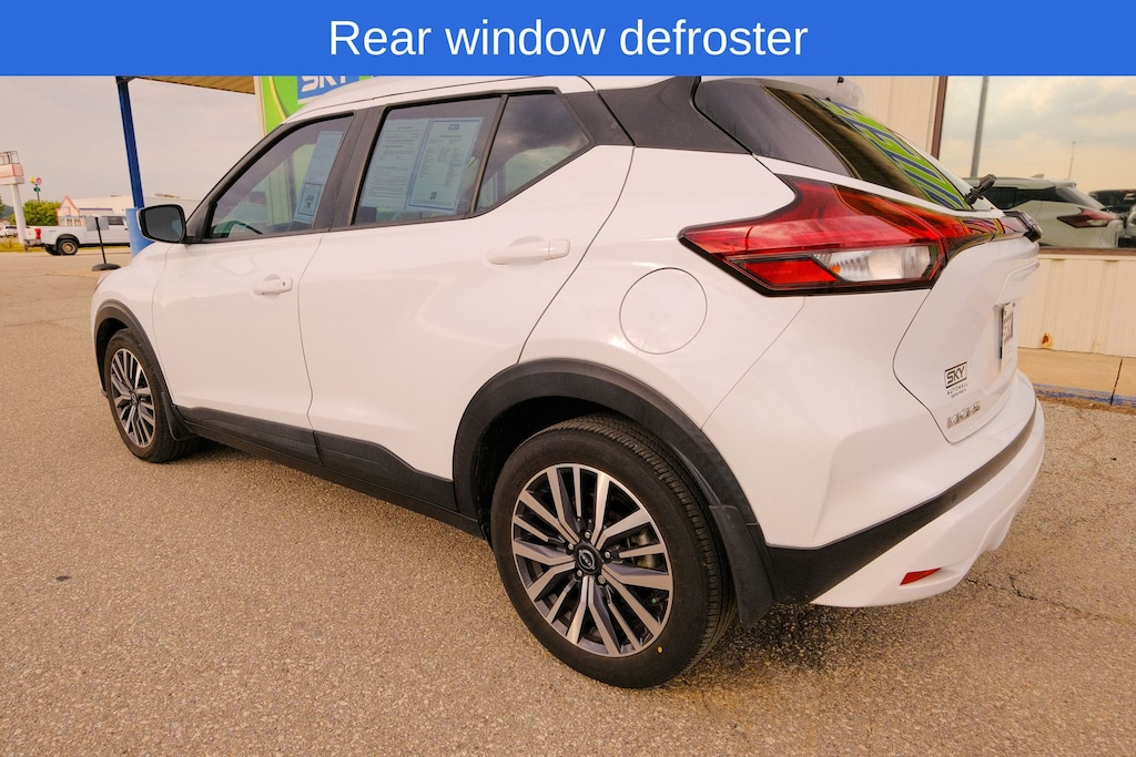 Alloy wheels, Apple CarPlay/Android Auto, Blind Spot Warning, Brake assist, Heated door mirrors, Rear Parking Sensors, Rear window defroster, Remote keyless entry, Split folding rear seat, Steering wheel mounted audio controls. Fresh Powder 2022 Nissan Kicks SV FWD CVT with Xtronic 1.6L 4-Cylinder DOHC 16V