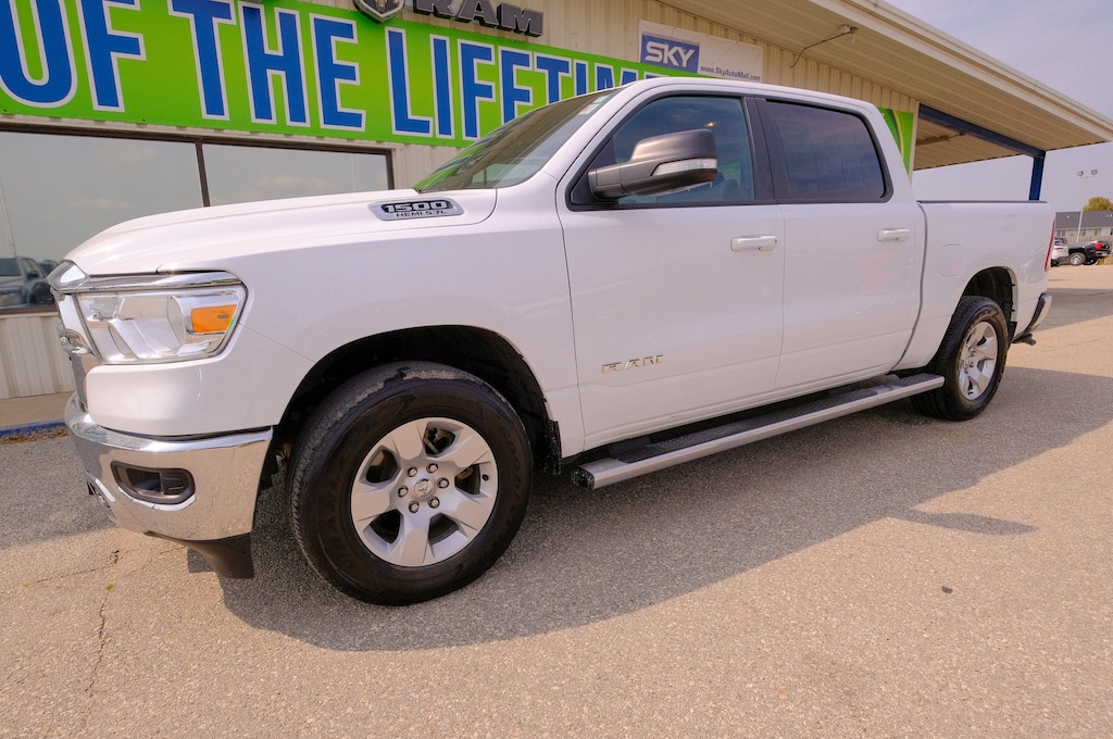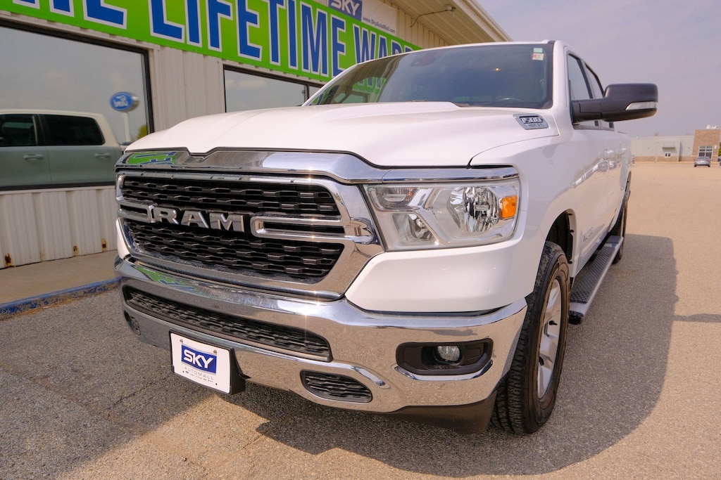 The 2022 Ram 1500 Big Horn is built to impress with its bold design, powerful performance, and refined interior. Under the hood, youâll find strong engine options that deliver the muscle you need for towing, hauling, or just cruising with confidence. The Big Horn trim stands out with chrome accents, stylish 18-inch wheels, and a commanding presence on the road.